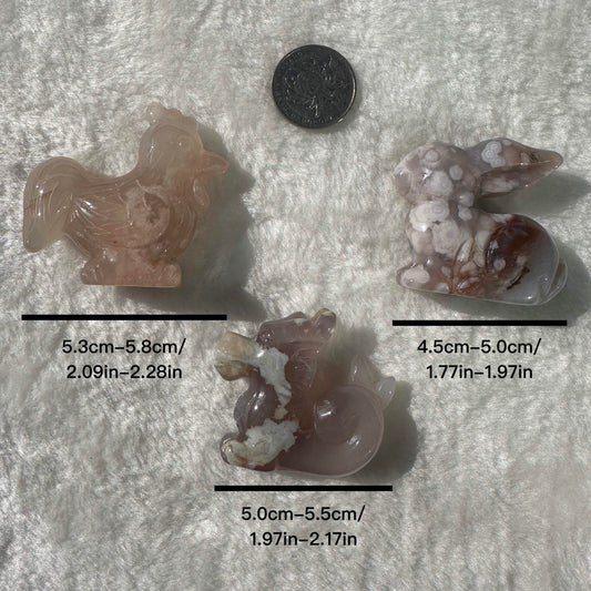 Natural Flower Agate Rabbit Carving, Sakura Agate Animal Sculpture, Crystal Bunny, Gemstone Rabbit Figurine