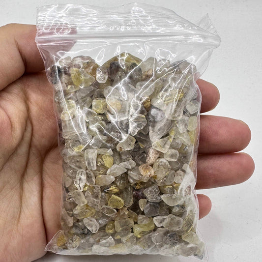 Natural Yellow Rabbit Hair Quartz Chips, Gemstone chips