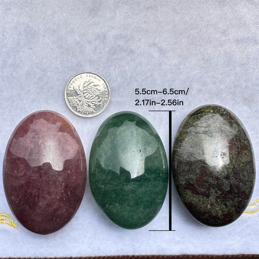 Natural Green Strawberry Quartz Oval Shape Palm Stones, 5.5-6.5cm/2.17-2.56in Crystal Palm Stone, Worry Stone