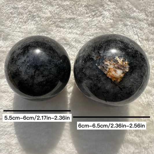 Natural Tourmaline-Embedded Quartz Sphere, Black Hair Quartz Orb, Tourmalinated Quartz Ball