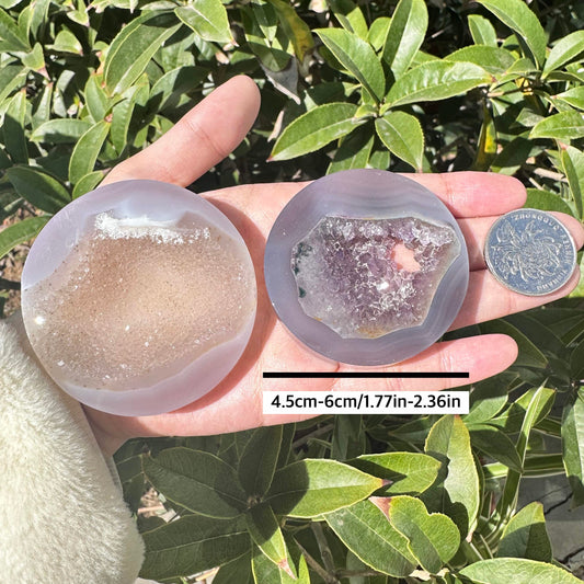 Natural Round Agate Slice with Geodes, Agate Carving with Geodes