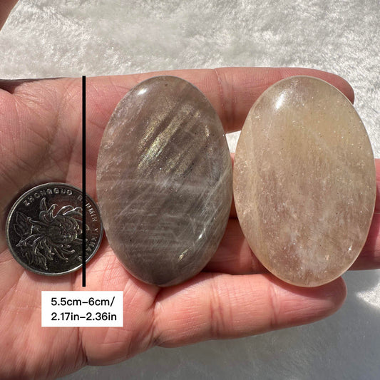 Natural Blue Flash Moonstone Palm Stone, 5.5-6cm/ 2.17-2.36in Premium Moonstone Specimen