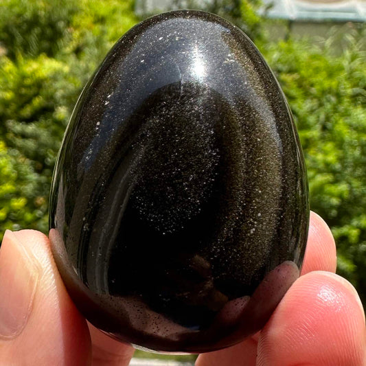 Natural Shimmering Golden Obsidian Egg With Different Sizes, Egg Shaped Obsidian Ornament
