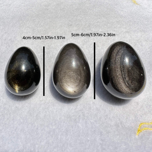 Natural Shimmering Silver Obsidian Egg With Different Sizes, Egg Shaped Obsidian Ornament