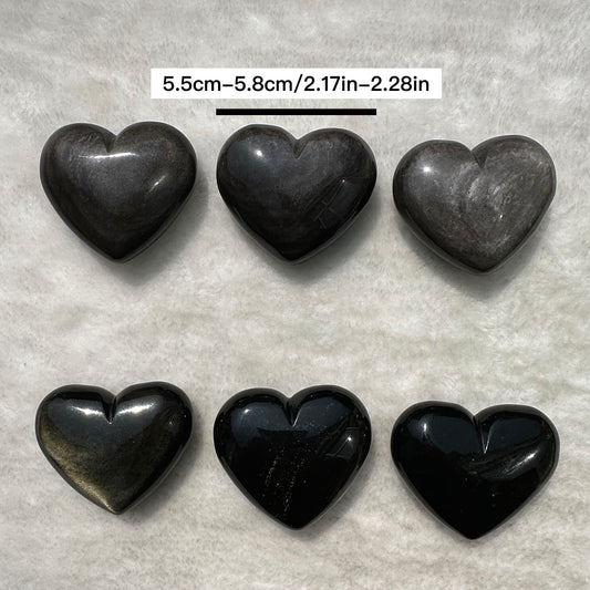 Natural Silver/Golden Obsidian Heart Carving - Shimmering Crystal Love; 5.5-5.8cm/2.17-2.28in Heart Shaped Obsidian Ornament