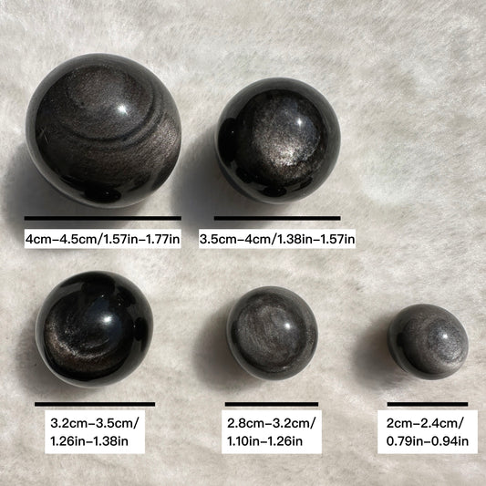Natural Silver Sheen Obsidian Ball, Shimmering Obsidian Orb, Metallic Obsidian Crystal Ball