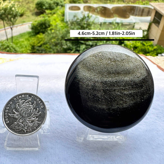 Natural Golden Obsidian Cookie, 4.6-5.2cm/1.81-2.05in Golden Obsidian Round Palm Stone
