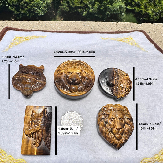 High-quality Tiger's Eye Lion Carving, 2 Styles Natural Tiger Eye Animal Carvings, Lion Sculpture