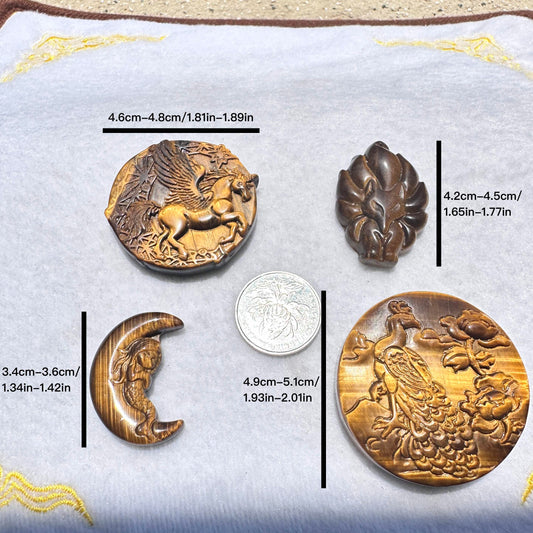 High-quality Tiger's Eye Dragon & Phoenix Carving, 2 Styles Natural Tiger Eye Carving, Dragon and Phoenix Sculpture