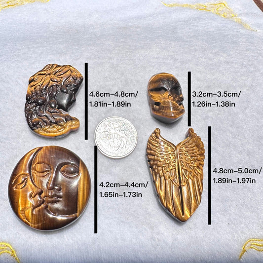High-quality Tiger's Eye Moon and Sun Faces Carving, Natural Tiger Eye Carvings, Symbol Carving, Moon and Sun Faces Sculpture